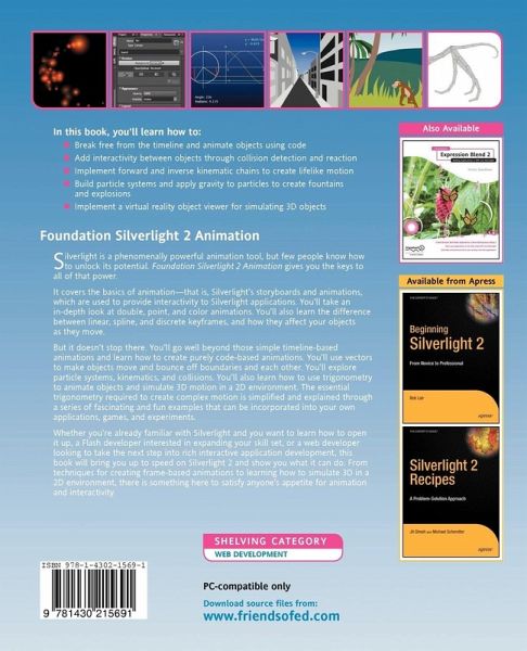 See the power of Silverlight in action Learn the building blocks of animation in Silverlight 2 Includes over 180 example Silverlight projectsSilverlight is a phenomenally powerful animation tool, but few people know how to unlock its potential. Foundation Silverlight 2 Animation gives you the keys to all of that power.