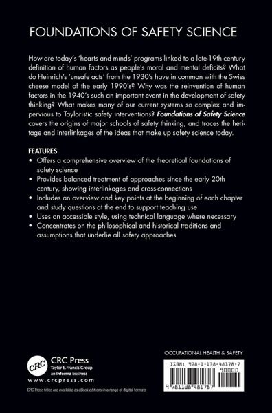 How are today's 'hearts and minds' programs linked to a late-19th century definition of human factors as people's moral and mental deficits? What do Heinrich's 'unsafe acts' from the 1930's have in common with the Swiss cheese model of the early 1990's? Why was the reinvention of human factors in the 1940's such an important event in the development of safety thinking? What makes many of our current systems so complex and impervious to Tayloristic safety interventions? 'Foundations of Safety Science' covers the origins of major schools of safety thinking, and traces the heritage and interlinkages of the ideas that make up safety science today.
