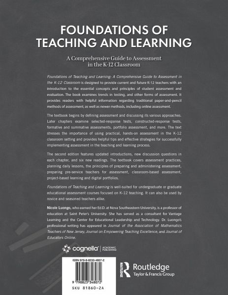 Foundations of Teaching and Learning: A Comprehensive Guide to Assessment in the K-12 Classroom is designed to provide current and future K-12 teachers with an introduction to the essential concepts and principles of student assessment and evaluation. The book examines trends in testing, and other forms of assessment. It provides readers with helpful information regarding traditional paper-and-pencil methods of assessment, as well as newer methods, including online assessment. The textbook begins by defining assessment and discussing its various approaches. Later chapters examine selected-response tests, constructed-response tests, formative and summative assessments, portfolio assessment, and more. The text stresses the importance of using practical, hands-on assessment in the K-12 classroom setting and provides helpful tips and effective strategies for successfully implementing assessment in the teaching and learning process. The second edition features updated introductions, new discussion questions in each chapter, and six new readings. The textbook covers assessment practices, planning daily lessons, the principles of preparing and administering assessment, preparing pre-service teachers for assessment, classroom-based assessment, project-based learning and digital portfolios. Foundations of Teaching and Learning is well-suited for undergraduate or graduate educational assessment courses focused on K-12 teaching. It can also be used by novice and seasoned teachers alike.
