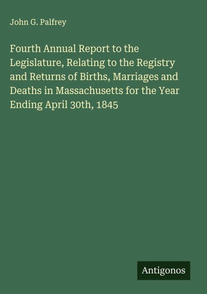 Fourth Annual Report to the Legislature, Relating to the Registry and Returns of Births, Marriages and Deaths in Massachusetts for the Year Ending April 30th, 1845