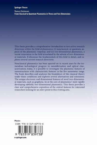 Nonclassical plasmonics has been spurred on in recent years by the tremendous technological progress in nanofabrication and optical characterization; today, it is possible to investigate the plasmonic features of nanostructures with characteristic features in the few nanometer range. The book describes and analyzes the breakdown of the classical theory under these conditions and explores several alternatives and extensions. The unique electronic and dimensional features of novel two-dimensional materials, such as graphene, lie at the coreof plasmonics' most rapidly developing subfield; two-dimensional plasmonics. This thesis provides a clear and comprehensive exposition of the central features for interested researchers looking for an entry point to this riveting area.