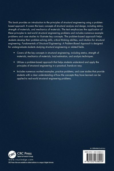 Covers all the key concepts in structural engineering, including statics, strength of materials, mechanics of materials, load estimation, and analysis techniques.Utilizes a problem-based approach that helps students understand and apply the principles of structural engineering in a practical, hands-on way.Includes numerous worked examples, practice problems, and case studies that provide students with a clear understanding of how the concepts they have learned can be applied to real-world structural engineering problems.