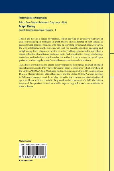 The editors were inspired to create these volumes by the popular and well attended special sessions, entitled "My Favorite Graph Theory Conjectures," which were held at the winter AMS/MAA Joint Meeting in Boston (January, 2012), the SIAM Conference on Discrete Mathematics in Halifax (June,2012) and the winter AMS/MAA Joint meeting in Baltimore(January, 2014). In an effort to aid in the creation and dissemination of open problems, which is crucial to the growth and development of a field, the editors requested the speakers, as well as notable experts in graph theory, to contribute to these volumes.