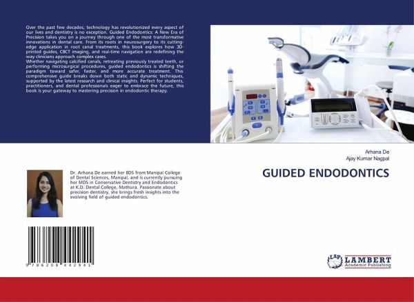 Over the past few decades, technology has revolutionized every aspect of our lives and dentistry is no exception. Guided Endodontics: A New Era of Precision takes you on a journey through one of the most transformative innovations in dental care. From its roots in neurosurgery to its cutting-edge application in root canal treatments, this book explores how 3D-printed guides, CBCT imaging, and real-time navigation are redefining the way clinicians approach complex cases.Whether navigating calcified canals, retreating previously treated teeth, or performing microsurgical procedures, guided endodontics is shifting the paradigm toward safer, faster, and more accurate treatment. This comprehensive guide breaks down both static and dynamic techniques, supported by the latest research and clinical insights. Perfect for students, practitioners, and dental professionals eager to embrace the future, this book is your gateway to mastering precision in endodontic therapy.