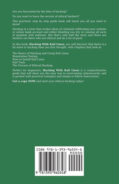 Are you fascinated by the idea of hacking? Do you want to learn the secrets of ethical hackers? This practical, step by step guide book will teach you all you need to know! Hacking is a term that evokes ideas of criminals infiltrating your website or online bank account and either bleeding you dry or causing all sorts of mayhem with malware. But that's only half the story and there are hackers out there who are ethical and do a lot of good. In this book, Hacking With Kali Linux, you will discover that there is a lot more to hacking than you first thought, with chapters that look at:The Basics of Hacking and Using Kali Linux Penetration Testing How to Install Kali Linux Kali Tools The Process of Ethical Hacking Perfect for beginners, Hacking With Kali Linux is a comprehensive guide that will show you the easy way to overcoming cybersecurity, and is packed with practical examples and simple to follow instructions. Get a copy NOW and start your ethical hacking today!
