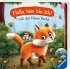Im Wald gibt es so viel zu entdecken! Der kleine Fuchs springt neugierig über Baumwurzeln, trifft auf einen Igel und beobachtet ein Eichhörnchen beim Klettern. Er nascht süße Beeren von einem Busch und jagt einer Maus hinterher. Nach dem Schwimmen durch den Fluss beobachtet er die Ameisen am Ameisenhügel und hört den Uhu rufen. Zeit, nach Hause zu gehen. Im Fuchsbau warten schon seine Geschwister auf ihn. Das war ein abenteuerlicher Tag! Was erlebt der kleine Fuchs morgen?