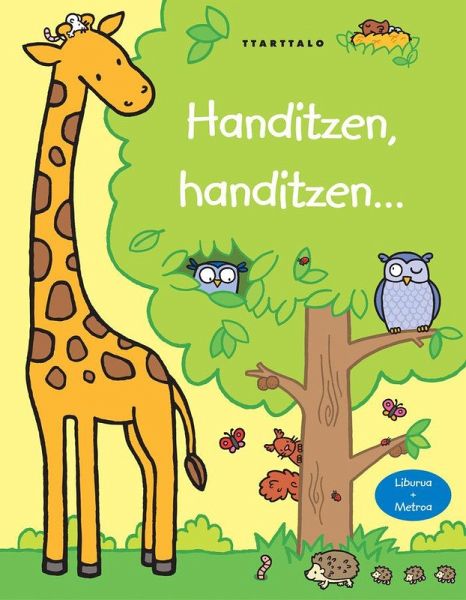 Haurrak neurriak ezagutzeko hiru tresna eskaintzen ditu kutxa honek: metro polit bat; bertan izena, altuera eta data idazteko eranskailuak; eta animalien altuerak alderatzen dituen liburu koloretsua.