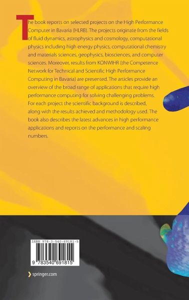 The book reports on selected projects on the High Performance Computer in Bavaria (HLRB). The projects originate from the fields of fluid dynamics, astrophysics and cosmology, computational physics including high energy physics, computational chemistry and materials sciences, geophysics, biosciences, and computer sciences. Moreover, results from KONWIHR (the Competence Network for Technical and Scientific High Performance Computing in Bavaria) are presented. The articles provide an overview of the broad range of applications that require high performance computing for solving challenging problems. For each project the scientific background is described, along with the results achieved and methodology used. The book also describes the latest advances in high performance applications and reports on the performance and scaling numbers.