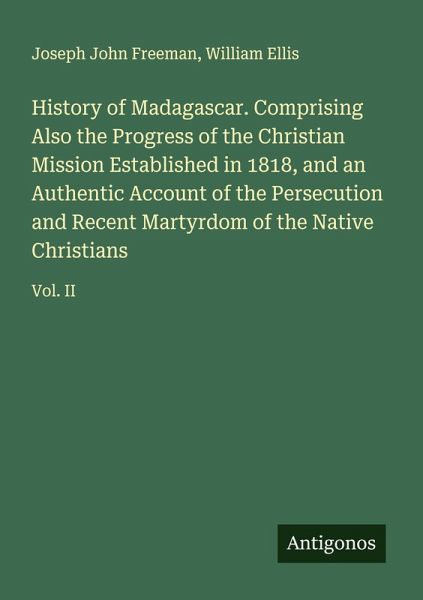 History of Madagascar. Comprising Also the Progress of the Christian Mission Established in 1818, and an Authentic Account of the Persecution and Recent Martyrdom of the Native Christians