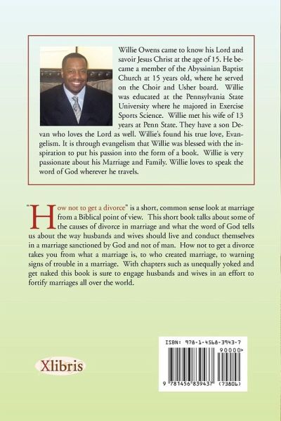 Willie L. Jr. OwensBroschiertes BuchHow Not to Get a Divorce Versandkostenfrei!Versandfertig in 1-2 Wochen13,99 €inkl. MwSt. Jetzt bewerten In den Warenkorb PAYBACK Punkte 7 °P sammeln! BeschreibungBewertungProduktdetails How Not to Get a Divorce ProduktdetailsVerlag: XlibrisSeitenzahl: 54Erscheinungstermin: 14. Januar 2011 EnglischAbmessung: 229mm x 152mm x 3mmGewicht: 95gISBN-13: 9781456839437ISBN-10: 1456839438Artikelnr.: 33086959HerstellerkennzeichnungLibri GmbHEuropaallee 136244 Bad Hersfeldgpsr@libri.de Für dieses Produkt wurde noch keine Bewertung abgegeben. Wir würden uns sehr freuen, wenn du die erste Bewertung schreibst! Eine Bewertung schreiben Andere Kunden interessierten sich für Barrister Julie D. … The Monster Called Divorce 18,99 € Lenard Marlow To Divorce or Not to Divorce 16,99 € David J. Hathaway How to Become a Better Me 20,99 € Don White, John … Fragments to Mosaic 51,99 € Cattina C. … To Have, To Hold, and To Never Let Go 17,99 € Fritz Dorce On Your Way to a Healthier You 14,99 € Dorothy Sicard Called To Happiness 17,99 € Mark A. Dunn Yesterday's History and Tomorrow's a … 14,99 € Loretto … The Twelve Step Program to Writing Your … 18,99 € Glenn Chambers A 1,000 Ways to a Better Life 17,99 €