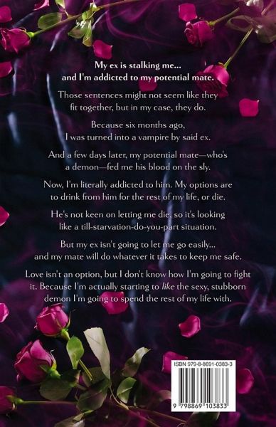 My ex is stalking me... and I'm addicted to my potential mate. Those sentences might not seem like they fit together, but in my case, they do. Because six months ago, I was turned into a vampire by said ex. And a few days later, my potential mate-who's a demon-fed me his blood on the sly. Now, I'm literally addicted to him. My options are to drink from him for the rest of my life, or die. He's not keen on letting me die, so it's looking like a till-starvation-do-you-part situation. But my ex isn't going to let me go easily... and my mate will do whatever it takes to keep me safe. Love isn't an...