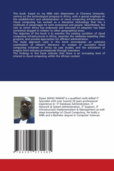 This book, based on my MBA mini dissertation at Charisma University, centres on the technological progress in Africa, with a special emphasis on the establishment and administration of cloud computing infrastructures. Cloud computing has evolved as a disruptive technology that has a multitude of advantages for both enterprises and people. Nevertheless, the rate at which Africa has embraced and executed its adoption has been somewhat sluggish in relation to other geographical areas. The objective of this book is to examine the existing condition of cloud computing infrastructures in Africa, ascertain the obstacles impeding their progress, and provide approaches for efficient administration. The study approach used in this book encompasses an extensive examination of relevant literature, an analysis of successful cloud computing initiatives in Africa via case studies, and the solicitation of insights from industry professionals through interviews. The findings in this book indicatethat there is an increasing level of interest in cloud computing within the African context.