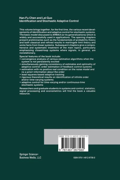 Identifying the input-output relationship of a system or discovering the evolutionary law of a signal on the basis of observation data, and applying the constructed mathematical model to predicting, controlling or extracting other useful information constitute a problem that has been drawing a lot of attention from engineering and gaining more and more importance in econo metrics, biology, environmental science and other related areas. Over the last 30-odd years, research on this problem has rapidly developed in various areas under different terms, such as time series analysis, signal processing and system identification. Since the randomness almost always exists in real systems and in observation data, and since the random process is sometimes used to model the uncertainty in systems, it is reasonable to consider the object as a stochastic system. In some applications identification can be carried out off line, but in other cases this is impossible, for example, when the structure or the parameter of the system depends on the sample, or when the system is time-varying. In these cases we have to identify the system on line and to adjust the control in accordance with the model which is supposed to be approaching the true system during the process of identification. This is why there has been an increasing interest in identification and adaptive control for stochastic systems from both theorists and practitioners.