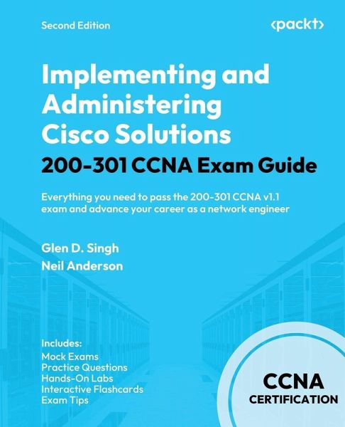 Get exam-ready for the CCNA 200-301 v1.1 certification exam with Cisco experts Glen D. Singh and Neil Anderson using practical labs and focused strategies. Includes mock exams, flashcards, exam tips, and a free eBook PDF with your purchase. Key Features: - Complete coverage of all CCNA 200-301 v1.1 exam objectives aligned with Cisco's official blueprint - Build foundational skills in switching, routing, IP services, security, wireless, and automation - Configure networks with through 30+ hands-on labs using Cisco Packet Tracer scenarios - Test your exam readiness with 2 mocks, 170+ review questions, and detailed explanations Book Description: Kickstart your networking career with confidence by acing the CCNA exam on your first try. The Cisco Certified Network Associate (CCNA) certification opens doors to high-demand roles in networking and security. This fully updated second edition makes exam success achievable, even if you're just starting out. Aligned with the latest Cisco blueprint, this CCNA 200-301 exam guide combines real-world examples, step-by-step labs, and clear explanations to help you master all six exam domains. You'll build a solid foundation in switching, routing, IP addressing, network services, wireless technologies, security, and automation. Along the way, you'll sharpen your skills with hands-on configuration tasks, visual diagrams, and simulation exercises using Cisco Packet Tracer. Each chapter includes review questions that reflect actual exam difficulty, helping you stay on track and gauge your readiness. You'll also get access to online extras: over 170 practice questions, two full-length mock exams, interactive flashcards, exam tips from Cisco experts, and more than 30 practice labs. From exam strategies to high-demand skills, this guide offers everything you need to get certified, hired, or grow in your network engineering and security administration roles. What You Will Learn: - Understand how switching, routing, and IP addressing work in network environments - Create VLANs and configure static and dynamic routing using Cisco CLI commands - Set up IP services including DHCP, NAT, DNS, and NTP across network devices - Apply wireless settings, security features, and access control to secure networks - Use Cisco Packet Tracer to build, test, and troubleshoot network configurations - Solve realistic practice questions that mirror the actual CCNA 200-301 v1.1 exam format Who this book is for: This exam guide is for IT professionals looking to advance their network engineering and security administration careers. If you're aiming to earn your Cisco CCNA certification and launch a career as a network security professional, this book is the perfect resource. While no prior knowledge of Cisco technologies is required, a basic understanding of industry-standard networking fundamentals will help you easily grasp the topics covered. Table of Contents - Introduction to Networking - Getting Started with Cisco IOS Devices - Network Architectures and Physical Infrastructure - IPv4 and IPv6 Addresses - Practical Subnetting - Wireless Architectures and Virtualization - Implementing VLANs and Interswitch Connectivity - EtherChannels and Layer 2 Discovery Protocols - Understanding and Configuring Spanning Tree - Interpreting Routing Components - Understanding Static and Dynamic Routing - Network Address Translation - Network Services and IP Operations - Exploring Network Security - Device Access Controls and VPNs - Implementing Access Controls Lists (ACLs) - Implementing Layer 2 and Wireless Security - Network Automation and Programmability Techniques