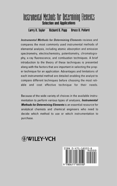 Because of the wide variety of choices in available instrumentation to perform various types of analyses (of varying sensitivity and selectivity), this book provides an invaluable service to analysts in labs everywhere who need to decide which method to use, which instrumentation to purchase, who hesitate between one method or another, or are simply curious about methods they have not yet used. This book is adressed to analytical chemists and all other chemists and technicians who analyze samples. It is also a helpful tool for chemists, technicians and managers who need to recommend the purchase of instrumentation to their supervisors. The book will help relieve the pressure on the chemist who is expected to provide faster, more accurate, more precise, and less expensive results. (From an article in C&E News, cited in the introduction.)