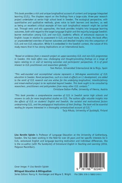 This book provides a unique longitudinal account of content and language integrated learning (CLIL). Giving voice to both learners and teachers, it offers insights into language learning outcomes, learner motivation among CLIL and non-CLIL students, effects of extramural exposure to English, issues in relation to assessment in CLIL and much more.