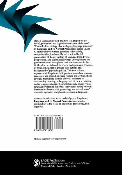Presenting the psychology of language from diverse perspectives, Language and Its Normal Processing explains how language is defined and how it is shaped by the social, perceptual and cognitive constraints of the user, and what role biology plays in shaping language structure. Vivien Tartter not only takes readers through the basic controversies in the field, but also explores sociolinguistics, bilingualism, and second language reading and writing. The role of social processes is emphasized in constructing meaning, in language and literacy acquisition, and in language change. The book covers typical language processing in normal individuals, with thorough updates of relevant literature on the structure, processing and acquisi