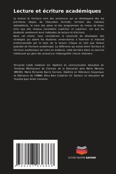 La lecture et l'écriture sont des processus qui se développent dès les premières étapes de l'éducation formelle, formant des individus alphabétisés, le sens des plans et des programmes du niveau de base, ainsi que des niveaux secondaire supérieur et supérieur, est que les étudiants améliorent leurs habitudes de lecture et d'écriture.Dans cet article, nous considérons la nécessité de développer des stratégies qui aident les étudiants universitaires à favoriser la maturité professionnelle par le biais de la lecture critique en tant que facteur potentiel de l'écriture académique. La différence qui existe entre l'écriture et l'écriture académique est mise en évidence, cette dernière étant un exercice intellectuel qui gère des processus métacognitifs chez le rédacteur.