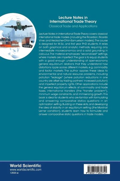Lecture Notes in International Trade Theory covers classical international trade models (including the Ricardian, Ricardo Viner, and Heckscher-Ohlin-Samuelson models). The course is designed for M.Sc. and first year PhD students. It relies on both graphical and analytic methods, requiring only intermediate microeconomics and a solid grounding in calculus. The material emphasizes "second-best" settings, where markets are imperfect. The goal is to equip students with a good enough understanding of open-economy general equilibrium relations that they understand how distortions ripple across different markets, e.g. commodity and factor markets. The Author applies these ideas to environmental and natural resource problems, including pollution "leakage" (where pollution reductions in one country are offset by trading partners' increased pollution) and imperfect property rights. Other applications include the general equilibrium effects of commodity and trade taxes, international transfers (the "transfer problem"), minimum wage constraints, and immiserizing growth. The Author assumes that students have some experience in formulating and answering comparative statics questions in an optimization setting. Building on these skills, and developing the idea of stability in an equilibrium setting (the Marshall Lerner condition), students learn how to formulate and answer comparative static questions in trade models.
