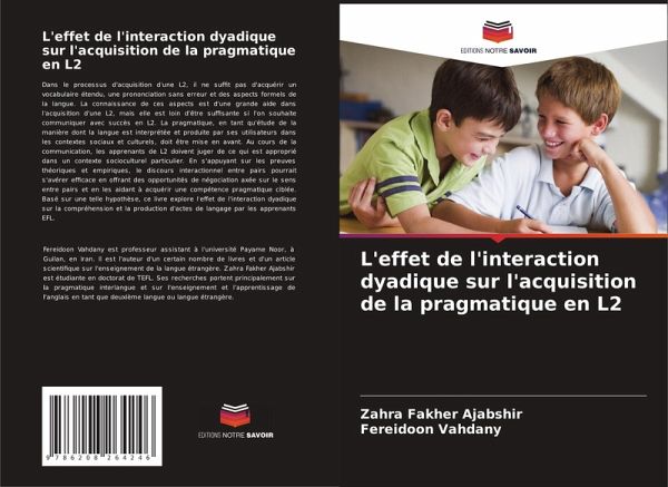 Dans le processus d'acquisition d'une L2, il ne suffit pas d'acquérir un vocabulaire étendu, une prononciation sans erreur et des aspects formels de la langue. La connaissance de ces aspects est d'une grande aide dans l'acquisition d'une L2, mais elle est loin d'être suffisante si l'on souhaite communiquer avec succès en L2. La pragmatique, en tant qu'étude de la manière dont la langue est interprétée et produite par ses utilisateurs dans les contextes sociaux et culturels, doit être mise en avant. Au cours de la communication, les apprenants de L2 doivent juger de ce qui est approprié dans un contexte socioculturel particulier. En s'appuyant sur les preuves théoriques et empiriques, le discours interactionnel entre pairs pourrait s'avérer efficace en offrant des opportunités de négociation axée sur le sens entre pairs et en les aidant à acquérir une compétence pragmatique ciblée. Basé sur une telle hypothèse, ce livre explore l'effet de l'interaction dyadique sur la compréhension et la production d'actes de langage par les apprenants EFL.