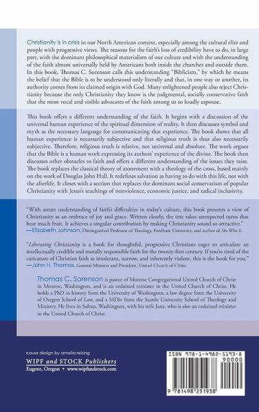 Christianity is in crisis in our North American context, especially among the cultural elite and people with progressive views. The reasons for the faith's loss of credibility have to do, in large part, with the dominant philosophical materialism of our culture and with the understanding of the faith almost universally held by Americans both inside the churches and outside them. In this book, Thomas C. Sorenson calls this understanding ""Biblicism,"" by which he means the belief that the Bible is to be understood only literally and that, in one way or another, its authority comes from its claimed origin with God. Many enlightened people also reject Christianity because the only Christianity they know is the judgmental, socially conservative faith that the most vocal and visible advocates of the faith among us so loudly espouse. This book offers a different understanding of the faith. It begins with a discussion of the universal human experience of the spiritual dimension of reality. It then discusses symbol and myth as the necessary language for communicating that experience. The book shows that all human experience is necessarily subjective and that religious truth is thus also necessarily subjective. Therefore, religious truth is relative, not universal and absolute. The work argues that the Bible is a human work expressing its authors' experience of the divine. The book then discusses other obstacles to faith and offers a different understanding of the issues they raise. The book replaces the classical theory of atonement with a theology of the cross, based mainly on the work of Douglas John Hall. It redefines salvation as having to do with this life, not with the afterlife. It closes with a section that replaces the dominant social conservatism of popular Christianity with Jesus's teachings of nonviolence, economic justice, and radical inclusivity.