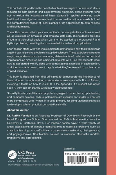 The book developed from the need to teach a linear algebra course to students focused on data science and bioinformatics programs. This textbook provides students a theoretical basis which can then be applied to the practical R and Python problems, providing the tools needed for real-world applications.