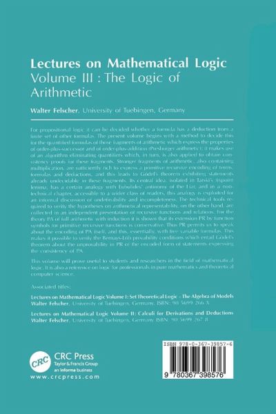 For propositional logic it can be decided whether a formula has a deduction from a finite set of other formulaas. This volume begins with a method to decide this for the quantified formulas of those fragments of arithmetic which express the properties of order-plus-successor and of order-plus-addition (Pressburger arithmetic). It makes use of an algorithm eliminating quantifiers which, in turn, is also applied to obtain consistency proofs for these fragments.