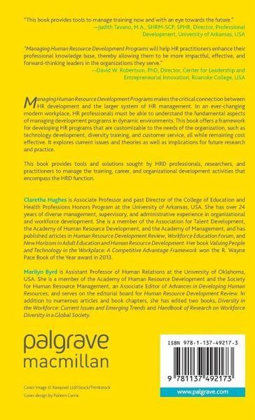 Managing Human Resource Development Programs makes the critical connection between HR development and the larger system of HR management. This book offers a framework for developing HR programs that are customizable to the needs of the organization.