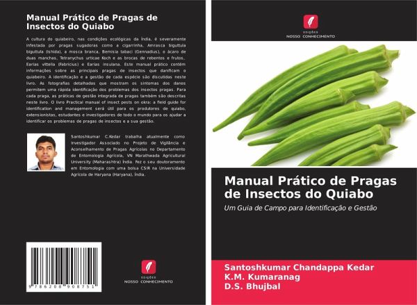 A cultura do quiabeiro, nas condições ecológicas da Índia, é severamente infestada por pragas sugadoras como a cigarrinha, Amrasca biguttula biguttula (Ishida), a mosca branca, Bemisia tabaci (Gennadius), o ácaro de duas manchas, Tetranychus urticae Koch e as brocas de rebentos e frutos, Earias vittella (Fabricius) e Earias insulana. Este manual prático contém informações sobre as principais pragas de insectos que danificam o quiabeiro. A identificação e a gestão de cada espécie são discutidas neste livro. As fotografias detalhadas que mostram os sintomas dos danos permitem uma rápida identificação dos problemas dos insectos pragas. Para cada praga, as práticas de gestão integrada de pragas também são descritas neste livro. O livro Practical manual of insect pests on okra: a field guide for identification and management será útil para os produtores de quiabo, extensionistas, estudantes e investigadores de todo o mundo para os ajudar a identificar os problemas de pragas de insectos e a sua gestão.