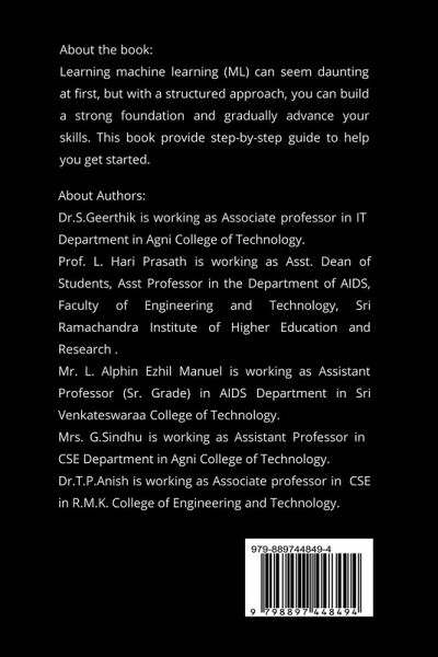 Machine Learning could transform every aspect of society, from healthcare and education to transportation and space exploration. While the potential benefits are immense, addressing the ethical, technical, and societal challenges will be crucial to ensuring that AI serves as a force for good. Learning machine learning (ML) can initially seem daunting, but with a structured approach, you can build a strong foundation and gradually advance your skills. This book provides a step-by-step guide to help you get started. By mastering machine learning, you can significantly improve the performance of your machine learning models and uncover hidden insights in your data.