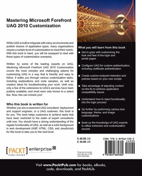 Leseprobe öffnen Erez Ben-AriRainier AmaraBroschiertes BuchMastering Microsoft Forefront Uag 2010 Customization Versandkostenfrei!Versandfertig in 1-2 Wochen51,99 €inkl. MwSt. Jetzt bewerten In den WarenkorbWeitere Ausgaben: eBook, PDF PAYBACK Punkte 26 °P sammeln! BeschreibungBewertungProduktdetails Mastering Microsoft Forefront Uag 2010 Customization ProduktdetailsVerlag: Packt PublishingSeitenzahl: 186Erscheinungstermin: 11. Februar 2012 EnglischAbmessung: 235mm x 191mm x 10mmGewicht: 359gISBN-13: 9781849685382ISBN-10: 184968538XArtikelnr.: 35114753HerstellerkennzeichnungLibri GmbHEuropaallee 136244 Bad Hersfeldgpsr@libri.de Für dieses Produkt wurde noch keine Bewertung abgegeben. Wir würden uns sehr freuen, wenn du die erste Bewertung schreibst! Eine Bewertung schreiben Andere Kunden interessierten sich für Kent Nordstr M. Microsoft Forefront Identity Manager … 57,99 € Nicolae Tarla Microsoft Dynamics CRM 2016 … 47,99 € Mark Polino Microsoft Dynamics GP 2010 Cookbook 60,99 € Victoria Yudin Microsoft Dynamics GP 2010 Implementation 63,99 € Chandru Shankar, … Microsoft Dynamics Sure Step 2010 62,99 € David John Parker Microsoft VISIO 2010 Business Process … 52,99 € Mass Customization for Personalized … 166,99 € Lee Ambrosius AutoCAD Platform Customization 53,99 € David J Parker Mastering Data Visualization with … 57,99 € Stefano Demiliani Mastering Microsoft Dynamics 365 … 54,99 €
