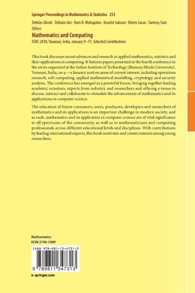 DEBDAS GHOSH is an assistant professor at the Department of Mathematical Sciences, Indian Institute of Technology (Banaras Hindu University), Varanasi, India. He has completed his PhD in mathematics from the Indian Institute of Technology (IIT) Kharagpur in 2014. His research interests include convex optimization, numerical optimization and optimization under uncertainty. DEBASIS GIRI is a professor at the Department of Computer Science and Engineering, Haldia Institute of Technology, India. His topics of interest are discrete mathematics, cryptography, information security, coding theory, advanced algorithms, design and analysis of algorithms, network security, security in wireless sensor networks, security in VANETs, and formal languages and automata theory. Professor Giri has delivered several talks and guest lectures at various universities and conferences. He is the supervisor of three PhD research scholars, as well as he has guided many B.Tech. and M.Tech. students. Heis associate editor of the Journal of Security and Communication Networks (Wiley) and the Journal of Electrical and Computer Engineering Innovations. Further, he is editorial board member and reviewer for many reputed international journals. He is also program committee member of many international conferences. He is a life member of Cryptology Research Society of India. He received his PhD on "Cryptanalysis and improvement of protocols for digital signature, smart card authentication and access control" from IIT Kharagpur. He also did his M.Tech. and M.Sc. from IIT Kharagpur. He secured the 10th position in all India rank with percentile score 98.42 in the Graduate Aptitude Test in Engineering (GATE) examination in 1999. Professor Giri has published more than 30 technical papers in several international journals and proceedings. RAM N. MOHAPATRA is a professor of mathematics at the University of Central Florida, Orlando, USA. He received his PhDdegree from the University of Jabalpur, India, in 1968. Earlier, he taught at Sambalpur University in India, American University in Beirut, Lebanon, University of Alberta, and York University, Canada, prior to coming to Orlando. His area of research is mathematical analysis, and he is the author of two books, two edited monographs and over 168 research papers. He referees articles for professional journals and serves as a member of editorial board of a number of journals. KOUICHI SAKURAI is a professor at the Faculty of Information Science and Electrical Engineering, Kyushu University, Japan. He is concurrently working with the Institute of Systems & Information Technologies and Nanotechnologies, as the chief of Information Security Laboratory, for promoting research cooperation among the industry, university and government under the theme "Enhancing IT-security in social systems". He has established research cooperation in the field of information security with Prof. Bimal Kumar Roy (the former director of Indian Statistical Institute, Kolkata, India). The first time Japan has partnered with the Cryptology Research Society of India (CRSI). Professor Sakurai has published more than 250 academic papers in cryptography and information security. EKREM SAVAS is a professor at the Department of Mathematics, Faculty of Science and Letters, Istanbul Commerce University, Turkey. In 2004, he received the American Honor Medal Award from the American Biographical Institute for his work in the field. He has published 2 books and over 280 international scientific publications, out of which 190 papers are published in SCI-indexed journals. TANMOY SOM is a professor at the Department of Mathematical Sciences, Indian Institute of Technology (Banaras Hindu University), Varanasi, India. He completed his PhD from Institute of Technology, Banaras Hindu University, India in 1986. He has successfully guided over 11 PhD students and published over 100 papers and several book chapters in reputed national and international journals, proceedings and edited books. He is editorial board member and reviewer of few reputed journals. He has delivered several invited talks at national and international conferences/seminars/refresher courses etc. His research interests are in functional analysis, optimization and mathematical modelling, fuzzy set theory, soft computing and image processing.