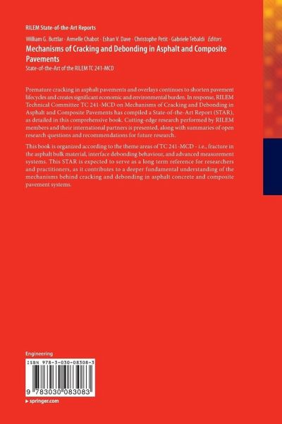 Premature cracking in asphalt pavements and overlays continues to shorten pavement lifecycles and creates significant economic and environmental burden. In response, RILEM Technical Committee TC 241-MCD on Mechanisms of Cracking and Debonding in Asphalt and Composite Pavements has conducted a State-of-the-Art Review (STAR), as detailed in this comprehensive book. Cutting-edge research performed by RILEM members and their international partners is presented, along with summaries of open research questions and recommendations for future research.
