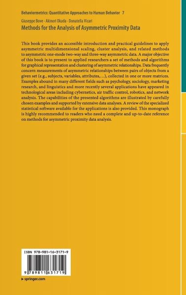 This book provides an accessible introduction and practical guidelines to apply asymmetric multidimensional scaling, cluster analysis, and related methods to asymmetric one-mode two-way and three-way asymmetric data. A major objective of this book is to present to applied researchers a set of methods and algorithms for graphical representation and clustering of asymmetric relationships. Data frequently concern measurements of asymmetric relationships between pairs of objects from a given set (e.g., subjects, variables, attributes,...), collected in one or more matrices. Examples abound in many different fields such as psychology, sociology, marketing research, and linguistics and more recently several applications have appeared in technological areas including cybernetics, air traffic control, robotics, and network analysis. The capabilities of the presented algorithms are illustrated by carefully chosen examples and supported by extensive data analyses. A review of the specialized statistical software available for the applications is also provided. This monograph is highly recommended to readers who need a complete and up-to-date reference on methods for asymmetric proximity data analysis.