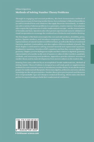 Through its engaging and unusual problems, this book demonstrates methods of reasoning necessary for learning number theory. Every technique is followed by problems (as well as detailed hints and solutions) that apply theorems immediately, so readers can solve a variety of abstract problems in a systematic, creative manner. New solutions often require the ingenious use of earlier mathematical concepts - not the memorization of formulas and facts. Questions also often permit experimental numeric validation or visual interpretation to encourage the combined use of deductive and intuitive thinking.