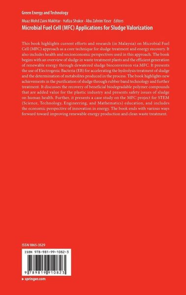 This book highlights current efforts and research (in Malaysia) on Microbial Fuel Cell (MFC) approach as a core technique for sludge treatment and energy recovery. It also includes health and socioeconomic perspectives used in this approach. The book begins with an overview of sludge in waste treatment plants and the efficient generation of renewable energy through dewatered sludge bioconversion via MFC. It presents the use of Electrogenic Bacteria (EB) for accelerating the hydrolysis treatment of sludge and the determination of metabolites produced in the process. The book highlights new achievements in the purification of sludge through rubber band technology and further treatment. It discusses the recovery of beneficial biodegradable polymer compounds that are added value for the plastic industry and presents safety issues of sludge on human health. Further, it presents a case study on the MFC project for STEM (Science, Technology, Engineering, and Mathematics) education, and includes the economic perspective of innovation in energy. The book ends with various ways forward toward improving renewable energy production and clean waste treatment.