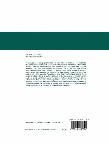 From guppies to Galapagos finches and from adaptive landscapes to haldanes, this compilation of contributed works provides reviews, perspectives, theoretical models, statistical developments, and empirical demonstrations exploring the tempo and mode of microevolution on contemporary to geological time scales. New developments, and reviews, of classic and novel empirical systems demonstrate the strength and diversity of evolutionary processes producing biodiversity within species. Perspectives and theoretical insights expand these empirical observations to explore patterns and mechanisms of microevolution, methods for its quantification, and implications for the evolution of biodiversity on other scales. This diverse assemblage of manuscripts is aimed at professionals, graduate students, and advanced undergraduates who desire a timely synthesis of current knowledge, an illustration of exciting new directions, and a springboard for future investigations in the study of microevolution in the wild.