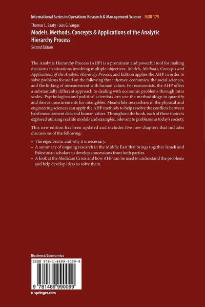 The Analytic Hierarchy Process (AHP) is a prominent and powerful tool for making decisions in situations involving multiple objectives. Models, Methods, Concepts and Applications of the Analytic Hierarchy Process, 2nd Edition applies the AHP in order to solve problems focused on the following three themes: economics, the social sciences, and the linking of measurement with human values. For economists, the AHP offers a substantially different approach to dealing with economic problems through ratio scales. Psychologists and political scientists can use the methodology to quantify and derive measurements for intangibles. Meanwhile researchers in the physical and engineering sciences can apply the AHP methods to help resolve the conflicts between hard measurement data and human values. Throughout the book, each of these topics is explored utilizing real life models and examples, relevant to problems in today's society.