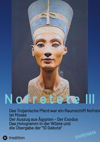 Dieses Buch legt weiter offen wer Nofretete alias Nefertiti alias Echnaton war und noch viele weitere Geheimnisse: wie z.B. Nofretete ist der echte wahre und wahrhaftige Moses und "Der Berg" _Hut-Waret/Auaris/Avaris war der Stammsitz von Eje aus dem königlichen Haus der Amenophis und es wurde durch den Verräter und Trojaner Seth zu Troja und weil er den außerirdischen elektromagnetischen Schutzschirm gestohlen hatte, den man auch die schöne "Helene" nennt, wurde daraus die Legende vom Trojanischen Pferd und Paris, der die schöne "Helena" raubte _ Durch den Schirm hatte sich Seth unangreifbar gemacht, daher konnte man dem nur mit außerirdischen Mitteln Herr werden. Ich berichte wie die geheime militärische Operation zur Eroberung von Troja mit dem Raumschiff und den 7 Tefen = Schallkanonen = Skorpionen von Achet-Aton aus ablief, ohne daß auch nur ein Tropfen Blut floss, es gibt sogar ein Bild von dieser Sezene, wo man das Raumschiff schwach erkennt _ Dadurch konnten die Is-Ra-Eliten aus der Knechtschaft und Sklaverei durch Seth befreit werden und in das Gelobte Land Canaan ziehen _ Wegen der Pest mussten sie 40 Tage, nicht 40 Jahre, in einem Lager in der Wüste in Quarantäne bleiben _ Dort erschien ihnen Moses = die Büste von Nofretete in einem riesigen Hologramm, welches die ganze Wüste in der Nacht Tag hell erleuchtete und bei dieser Gelegenheit übergab ER = Gott RE = Nofretete-Echnaton = Moses = "Der Berg" die 10 Gebote, die für alle Menschen gelten, ohne jedwede Ausnahme _ Ich erkläre was es mit dem Goldenen Kalb auf sich hat, besser gesagt mit dem Goldenen "Balk", ein kölscher Ausdruck für "Kind", denn in der Wüste wurde allen angeboten, daß sie ein Goldenes Göttliches Kind von dem Gott RE = Moses = Berg per künstlicher Befruchtung haben könnten. Das passte Seths Schergen, Seths Eidgenossen, Seths falschen Juden überhaupt nicht und sie ermordeten alle, die eins haben wollten_ Und so muss man einfach feststellen, sie zogen als Is-Ra-Eliten aus und kehrten als Juden zurück nach Jerusalem_ Und noch heute werden die falschen Lehren von Seth verbreitet, weil sie bewusst falsch gelehrt werden, wie z.B. daß der Pharao ein lebendiges Kind in den Korb schmiß _ Ich erkläre was es mit der Legende von Moses auf sich hat, die von Erde zu Erde weitergegeben wird. Immer wieder wird von der Zeit ein Körbchen mit einem Moses auf eine neue junge Erde geschickt + zwar auf dem Daten-Fluss + immer wieder kann nur eine Prinzessin den kleinen Moses aus dem Wasser (Samenflüssigkeit) fischen + immer wieder landet das Moses Körbchen nur bei einem Pharao. Das hat mit physikalischen Gesetzen zu tun, die in einer Legende verarbeitet wurden. Von Seth wurde die Legende absichtlich verfälscht, um sich an seinem Vater Nofretete-Echnaton zu rächen und so wird sie auch heute noch von Seths Anhängern falsch wiedergegeben, um den Hass auf den Pharao Nofretete-Echnaton nach wie vor zu schüren und die Menschen in die Irre zu führen. Auch der Koran wurde durch Seth absichtlich verfälscht, damit die Menschen schwere Schuld auf ihre Seele laden und bloß nicht nach den 10 Geboten leben.
