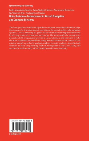 This book presents methods and algorithms to improve noise immunity of the navigation systems of civil aviation aircraft, operating on the basis of satellite radio navigation systems, as well as improving the quality of the transmission of navigation information by selecting a rational communication resource. The book provides for its productive perception both by specialists involved in the development and operation of radio electronic equipment, responsible for navigation and communication support of civil aviation aircraft, as well as by graduate students or senior students, since this book examines in detail the promising fields of development of these tools taking into account the need to comply with all requirements for noise immunity.