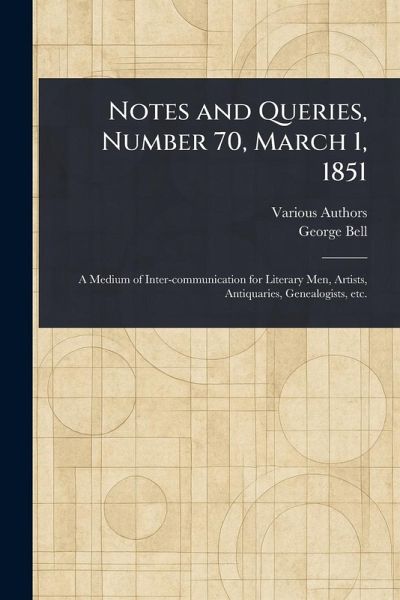 Delve into the fascinating world of 19th-century inquiry with "Notes and Queries, Number 70, March 1, 1851." This meticulously reproduced edition offers a window into the intellectual curiosity of the past, presenting a diverse collection of questions, answers, essays, and cultural notes originally published in the celebrated periodical. Explore a wide range of subjects through thought-provoking queries and insightful responses, reflecting the concerns and interests of the era. Compiled from various contributors, this volume showcases the art of discussion and the pursuit of knowledge. A treasure trove for researchers, history enthusiasts, and anyone captivated by the nuances of language and culture, "Notes and Queries" provides a unique glimpse into the minds of those who sought answers to life's enduring questions. Discover the timeless appeal of intellectual exchange and the enduring power of the written word. This work has been selected by scholars as being culturally important, and is part of the knowledge base of civilization as we know it. This work is in the public domain in the United States of America, and possibly other nations. Within the United States, you may freely copy and distribute this work, as no entity (individual or corporate) has a copyright on the body of the work. Scholars believe, and we concur, that this work is important enough to be preserved, reproduced, and made generally available to the public. We appreciate your support of the preservation process, and thank you for being an important part of keeping this knowledge alive and relevant.