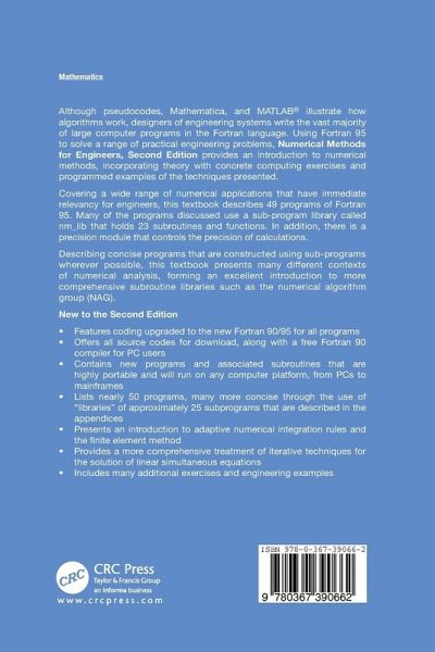 Focusing on techniques useful for solving a range of practical engineering problems, this book provides an introduction to numerical methods, incorporating theory with practical computing exercises and programmed examples of the techniques presented. This second edition features coding upgraded to the new Fortran 90/95 for all programs. The authors offer all source code for download along with a free Fortran 90 compiler for PC users. The book contains new programs and associated subroutines that are highly portable and will run on any computer platform, from PCs to mainframes. It also includes...