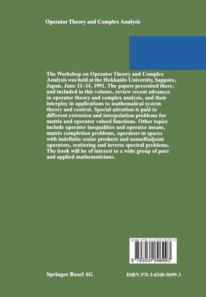 Scattering matrices for microschemes.- 1. General expressions for the scattering matrix.- 2. Continuity condition.- References.- Holomorphic operators between Krein spaces and the number of squares of associated kernels.- 0. Introduction.- 1. Realizations of a class of Schur functions.- 2. Positive squares and injectivity.- 3. Application of the Potapov-Ginzburg transform.- References.- On reproducing kernel spaces, the Schur algorithm, and interpolation in a general class of domains.- 1. Introduction.- 2. Preliminaries.- 3. B(X) spaces.- 4. Recursive extractions and the Schur algorithm.- 5. H?(S) spaces.- 6. Linear fractional transformations.- 7. One sided interpolation.- 8. References.- The central method for positive semi-definite, contractive and strong Parrott type completion problems.- 1. Introduction.- 2. Positive semi-definite completions.- 3. Contractive completions.- 4. Linearly constrained contractive completions.- References.- Interpolation by rational matrix functions and stability of feedback systems: The 4-block case.- 1. Preliminaries.- 2. A homogeneous interpolation problem.- 3. Interpolation problem.- 4. Parametrization of solutions.- 5. Interpolation and internally stable feedback systems.- References.- Matricial coupling and equivalence after extension.- 1. Introduction.- 2. Coupling versus equivalence.- 3. Examples.- 4. Special classes of operators.- References.- Operator means and the relative operator entropy.- 1. Introduction.- 2. Origins of operator means.- 3. Operator means and operator monotone functions.- 4. Operator concave functions and Jensen's inequality.- 5. Relative operator entropy.- References.- An application of Furuta's inequality to Ando's theorem.- 1. Introduction.- 2. Operator functions.- 3. Furuta's type inequalities.-4. An application to Ando's theorem.- References.- Applications of order preserving operator inequalities.- 0. Introduction.- 1. Application to the relative operator entropy.- 2. Application to some extended result of Ando's one.- References.- The band extension of the real line as a limit of discrete band extensions, I. The main limit theorem.- 0. Introduction.- I. Preliminaries and preparations.- II. Band extensions.- III. Continuous versus discrete.- References.- Interpolating sequences in the maximal ideal space of H? II.- 1. Introduction.- 2. Condition (A2).- 3. Condition (A3).- 4. Condition (A1).- References.- Operator matrices with chordal inverse patterns.- 1. Introduction.- 2. Entry formulae.- 3. Inertia formula.- References.- Models and unitary equivalence of cyclic selfadjoint operators in Pontrjagin spaces.- 1. The class F of linear functionals.- 2. The Pontrjagin space associated with ? ? F.- 3. Models for cyclic selfadjoint operators in Pontrjagin spaces.- 4. Unitary equivalence of cyclic selfadjoint operators in Pontrjagin spaces.- References.- The von Neumann inequality and dilation theorems for contractions.- 1. The von Neumann inequality and strong unitary dilation.- 2. Canonical representation of completely contractive maps.- 3. An effect of generation of nuclear algebras.- References.- Interpolation problems, inverse spectral problems and nonlinear equations.- References.- Extended interpolation problem in finitely connected domains.- I. Matrices and transformation formulas.- II. Disc Cases.- III. Domains of finite connectivity.- References.- Accretive extensions and problems on the Stieltjes operator-valued functions relations.- 1. Accretive and sectorial extensions of the positive operators, operators of the class C(?) and theirparametric representation.- 2. Stieltjes operator-valued functions and their realization.- 3. M.S. Livsic triangular model of the M-accretive extensions (with real spectrum) of the positive operators.- 4. Canonical and generalized resolvents of QSC-extensions of Hermitian contractions.- References.- Commuting nonselfadjoint operators and algebraic curves.- 1. Commuting nonselfadjoint operators and the discriminant