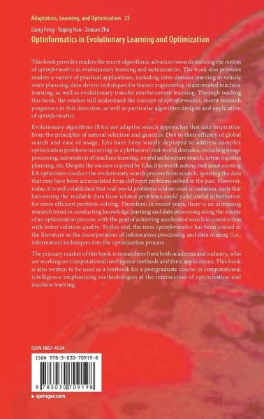 This book provides readers the recent algorithmic advances towards realizing the notion of optinformatics in evolutionary learning and optimization. The book also provides readers a variety of practical applications, including inter-domain learning in vehicle route planning, data-driven techniques for feature engineering in automated machine learning, as well as evolutionary transfer reinforcement learning. Through reading this book, the readers will understand the concept of optinformatics, recent research progresses in this direction, as well as particular algorithm designs and application of optinformatics.