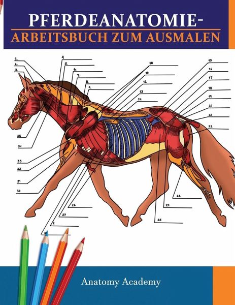 Unglaublich detailliertes Pferdeanatomie-Arbeitsbuch zum Ausmalen mit Selbsttest Das perfekte Geschenk für Tiermedizinstudenten, Pferdeliebhaber & Erwachsene