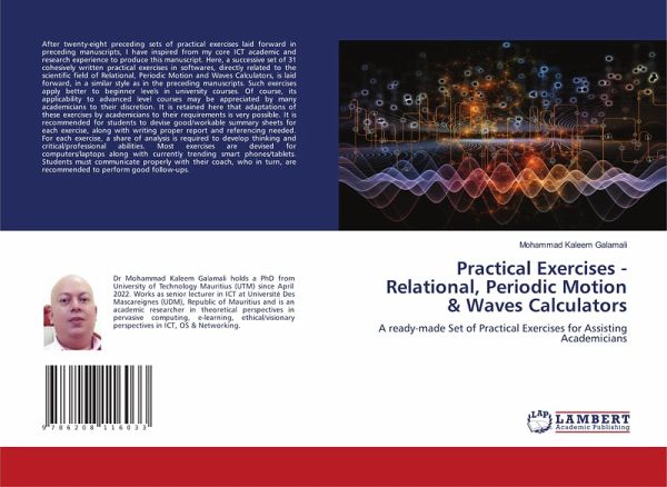 After twenty-eight preceding sets of practical exercises laid forward in preceding manuscripts, I have inspired from my core ICT academic and research experience to produce this manuscript. Here, a successive set of 31 cohesively written practical exercises in softwares, directly related to the scientific field of Relational, Periodic Motion and Waves Calculators, is laid forward, in a similar style as in the preceding manuscripts. Such exercises apply better to beginner levels in university courses. Of course, its applicability to advanced level courses may be appreciated by many academicians to their discretion. It is retained here that adaptations of these exercises by academicians to their requirements is very possible. It is recommended for students to devise good/workable summary sheets for each exercise, along with writing proper report and referencing needed. For each exercise, a share of analysis is required to develop thinking and critical/professional abilities. Most exercises are devised for computers/laptops along with currently trending smart phones/tablets. Students must communicate properly with their coach, who in turn, are recommended to perform good follow-ups.