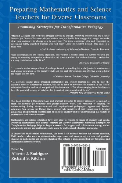 This book provides a theoretical basis and practical strategies to counter resistance to learning to teach for diversity (in culturally and gender-inclusive ways), and resistance to teaching for understanding (using student-centered and inquiry-based pedagogical approaches). Teacher educators from across the United States present rich narratives of their experiences in helping prospective and practicing teachers learn to teach for diversity and for understanding in a variety of mathematics and science contexts. Mathematics and science education has been slow to respond to issues of diversity and equity. Preparing Mathematics and Science Teachers for Diverse Classrooms: Promising Strategies for Transformative Pedagogy helps to begin a network for support and collaboration among teacher educators in science and mathematics who work for multicultural education and equity. A unique and much-needed contribution, this book is an essential resource for teacher educators, K-12 teachers who work as student teacher supervisors and cooperating teachers, and graduate students in mathematics and science education, and a compelling text for science and mathematics methods courses.
