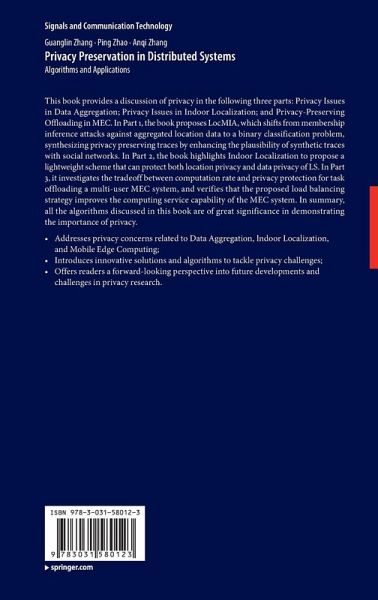 This book provides a discussion of privacy in the following three parts: Privacy Issues in Data Aggregation; Privacy Issues in Indoor Localization; and Privacy-Preserving Offloading in MEC. In Part 1, the book proposes LocMIA, which shifts from membership inference attacks against aggregated location data to a binary classification problem, synthesizing privacy preserving traces by enhancing the plausibility of synthetic traces with social networks. In Part 2, the book highlights Indoor Localization to propose a lightweight scheme that can protect both location privacy and data privacy of LS. In Part 3, it investigates the tradeoff between computation rate and privacy protection for task offloading a multi-user MEC system, and verifies that the proposed load balancing strategy improves the computing service capability of the MEC system. In summary, all the algorithms discussed in this book are of great significance in demonstrating the importance of privacy.