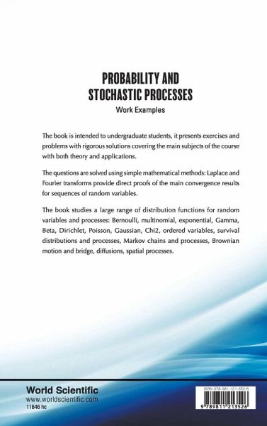 The book is intended to undergraduate students, it presents exercices and problems with rigorous solutions covering the mains subject of the course with both theory and applications. The questions are solved using simple mathematical methods: Laplace and Fourier transforms provide direct proofs of the main convergence results for sequences of random variables. The book studies a large range of distribution functions for random variables and processes: Bernoulli, multinomial, exponential, Gamma, Beta, Dirichlet, Poisson, Gaussian, Chi2, ordered variables, survival distributions and processes, M...