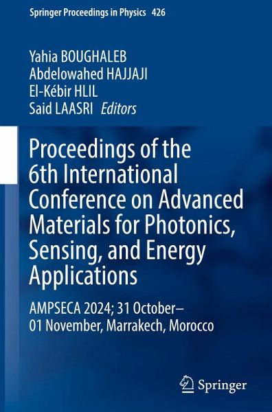 This book presents a selection of scientific peer reviewed articles presented at the 6th International Conference on Advanced Materials for Photonics, Sensing, and Energy Applications (AMPSECA 2024) held on 31Oct and 01Nov at Marrakech in Morocco. It explores advances in design, manufacturing, and applications of materials, as well as their use in biomaterials for medical, biological, and environmental applications. It discusses the challenges and opportunities associated with transitioning to clean and sustainable energy sources, as well as the technological and policy innovations needed to address these challenges. A dedicated track on Hydrogen Technologies examines the role in transition to a hydrogen-based economy, addressing topics such as production, storage, use, and infrastructure of hydrogen. The book also includes selected articles highlighting progress in detection and bio-detection technologies, including a range of innovative sensors and detection approaches tailored for various applications such as healthcare, environmental monitoring, and security systems. It emphasizes recent trends and advancements illustrating the dynamic evolution of photonics-based detection techniques and their crucial importance in contemporary science and technology. These articles make a significant contribution to research and understanding in their respective fields and provide an overview of the latest developments in these crucial areas of science and technology.